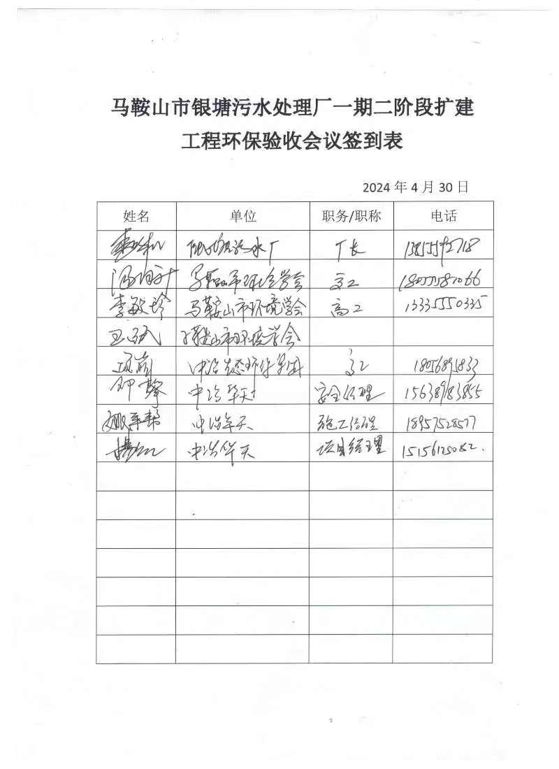 马鞍山市银塘污水处理厂一期二阶段改扩建工(gōng)程项目根据《建设项目环境保护管理条例》、《建设项目竣工环境保护验收暂行办法》等相关规定(dìng)于2024年4月30日组(zǔ)织召开竣工环(huán)境保(bǎo)护验收会。会议按照相关要求由马鞍山市中冶水(shuǐ)务有限公司(建设单位)、中冶华天工程技术有限公司(施(shī)工单位)、安徽省贝斯泰检测科技有限(xiàn)公司(编制单位)等单位的代(dài)表,会议(yì)邀请3名专家组成技(jì)术核查(chá)组,工作组通过现场勘查、询问(wèn)、讨论等方式最终形成(chéng)了验收意见,意见认为项目具备环境保护验收条件,项目验收合格。现将相关资料给予公(gōng)开,公示期为2024年5月11日至2024年(nián)5月26日。公示期间公(gōng)众可(kě)通过电(diàn)话或(huò)者邮件与我公司联系。