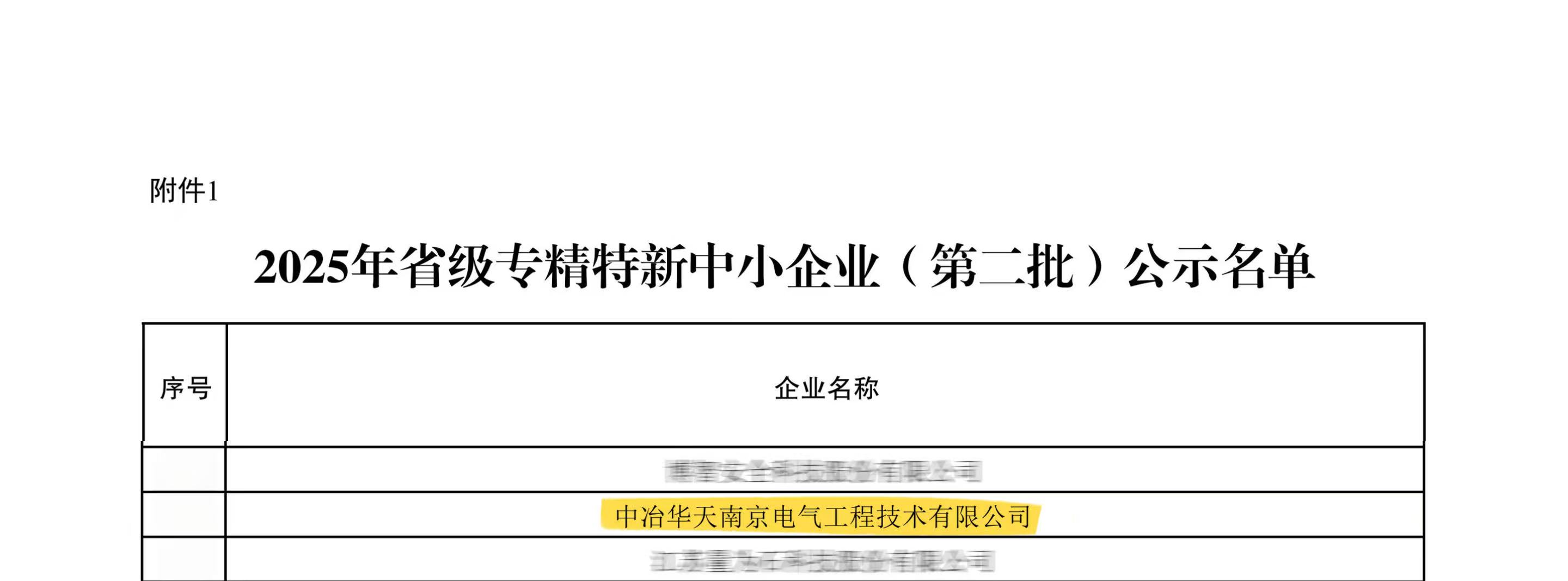 喜报!中冶华天电气公司获批省级专精(jīng)特新中小企业