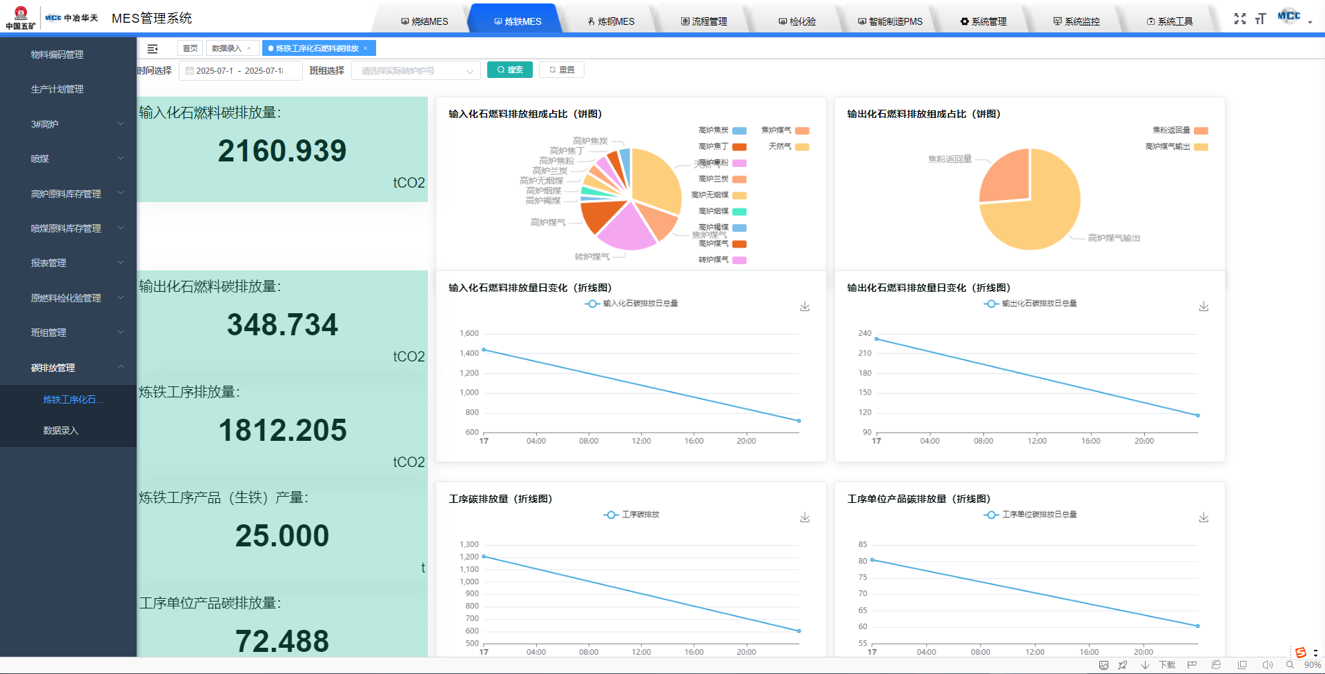 攻坚落地助力市场。为验(yàn)证技术可行性,立足公(gōng)司研发课题《基于系统优化的钢铁企业能(néng)源管理与碳排放系统开发与应用》,中冶华天南京电气选取钢铁生产关键环节开(kāi)展demo设计:在冀(jì)南钢铁(tiě)实现高炉吨铁碳排放动态计(jì)算,在(zài)兴鑫钢铁构建烧结过程核算模(mó)型,在亚新炼钢(gāng)和攀(pān)长特轧(zhá)钢验证(zhèng)转炉、热轧工序(xù)的碳排放因子动态修正算法。经上述多场(chǎng)景Demo测试,团(tuán)队构建起覆盖“烧结—高炉—转炉—轧钢”全流程碳排放(fàng)核算案例,攻克了生产数据碎片化、数据(jù)时间维度不对齐(qí)、核算边界不统一、因子动态更新(xīn)困难等技术(shù)瓶颈,为(wéi)山西(xī)亚新炼钢集控项目前期市场调研(yán)与投标工(gōng)作提供了支撑。